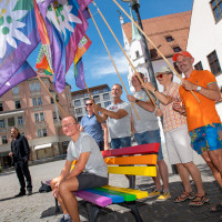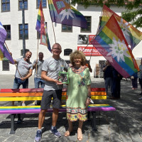 Pünktlich zum CSD München haben wir am 14.7. die erste von 4 Regenbogenbänken, die wir der Stadt München spenden, enthüllt. Stephansplatz und Luitpoldhügel folgen demnächst. Dank an unseren OB Dieter Reiter und Charlotte Knobloch, Präsidentin der Israelitische Kultusgemeinde München und Oberbayern, die unseren Wunsch, unsere erste Bank zwischen Stadtmuseum und Synagoge aufzustellen, sehr unterstützt hat. Unsere Regenbogenbänke tragen als Widmung unser Leitbild „Für Vielfalt, Akzeptanz und Offenheit! GOC – der queere* Alpenverein“. Der bewegendste Moment für uns war, als Frau Knobloch sagte, dass sie sich besonders darüber freut, dass wir als Teil des Alpenvereins, der ihren Vater 1925 ausgeschlossen hat, jetzt eine Regenbogenbank an „ihrer“ Synagoge aufstellen.