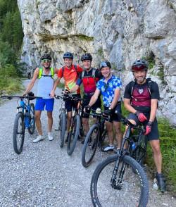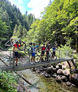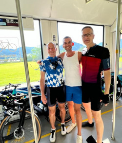 Nach der Erholung und Abkühlung führte uns nur noch zu viert ab St Quirin der Weg über den Tegernseer Höhenweg nach Hausham. Hier gab es die letzten teilweise schweißtreibenden Anstiege. und es rollte dann noch gemütlich bis direkt zum Bahnhof in Schiersee. Auch hier gab es wieder ein perfektes Timeing. Korbinian hatte wenige Meter vor dem Bahnhof einen Platten. Jedoch schaften es alle 5 Minuten bevor der Zug um 17:00 Uhr nach München anfuhr. Alles in allem eine sehr schöne Runde mit knapp 70km und 1100hm. Die Tour erlaubt unterschiedliche Räder. Wir waren mit Hardtail, Fully und Gravel unterwegs.